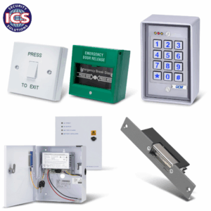 The ICS ONE K1 is a complete single-door access control kit designed for secure entry and simple installation. Featuring a digital keypad, fail-secure electric release, exit button, break-glass unit, and a 12V boxed power supply.